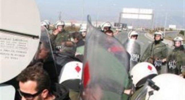 Έπειτα από μία δεκάλεπτη διαμαρτυρία κατευθύνθηκαν με τα πόδια προς τη γέφυρα. Στο σημείο εκείνο παρενέβησαν τα ΜΑΤ με ασπίδες και γκλομπ, ενώ στις διαμαρτυρίες των αγροτών οι αστυνομικές δυνάμεις απάντησαν με δακρυγόνα και βόμβες κρότου-λάμψης.