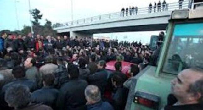 Φωνάζοντας συνθήματα κατά της κρατικής βίας, χιλιάδες αγρότες, εργάτες και φοιτητές, εδώ και λίγα λεπτά της ώρας, έχουν χωρίσει τη χώρα στα δύο, κλείνοντας την ΠΑΘΕ στο ύψος του κόμβου της Νίκαιας.