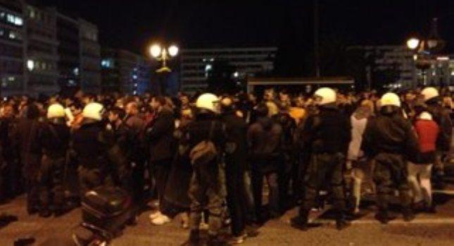 Ένταση επικρατεί και πάλι αυτή την ώρα στο Σύνταγμα, με τα ΜΑΤ να επιχειρούν να απωθήσουν τους διαδηλωτές. Πριν από λίγη ώρα έγινε έφοδος στη διασταύρωση Όθωνος και Αμαλίας, αλλά και στη Β. Σοφίας μέχρι την Ξενοφώντος. Έγινε χρήση χημικών και τουλάχιστον μία προσαγωγή ενός διαδηλωτή ο οποίος προπηλάκισε άνδρα των ΜΑΤ.