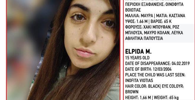 Στις 04/02/2019, στις 16:00 ώρα, εξαφανίστηκε από τα Οινόφυτα Βοιωτίας, η Ελπίδα Μ., 15 ετών.