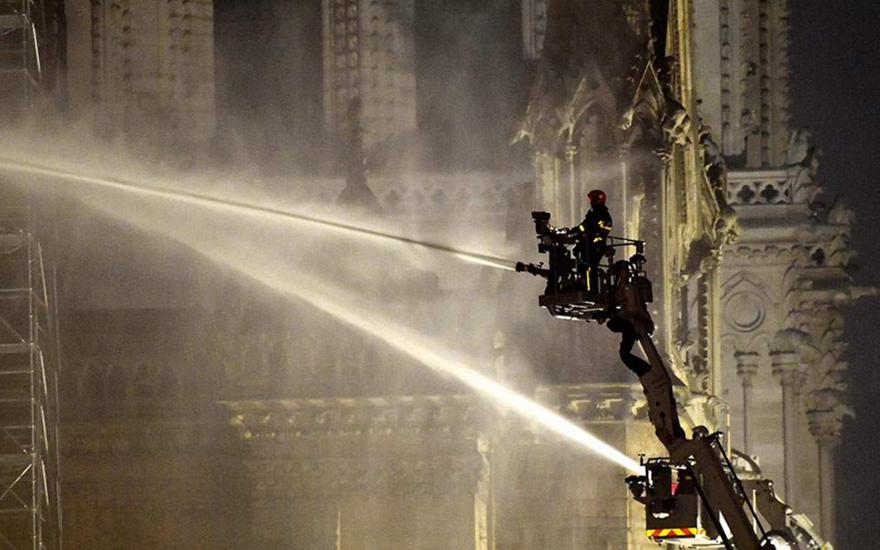 Αυτό επεσήμανε από την πρώτη στιγμή της είδησης για την πυρκαγιά στην «Νοτρ Νταμ» ο καθηγητής Ιστορίας της Αρχιτεκτονικής και Αποκατάστασης Μνημείων και υποδιευθυντής του Ινστιτούτου Εθνικής Πολιτιστικής Κληρονομιάς της Ισπανίας Χαβιέρ Ριβέρα Μπλάνκο, επικαλούμενος το προηγούμενο παράδειγμα του καθεδρικού ναού της Λιόν, ο αντίστοιχος ναός στη Νότιο Γαλλία σώθηκε το 1966 επειδή αποφεύχθηκε να κατασβεστεί η πυρκαγιά με τη χρήση νερού.