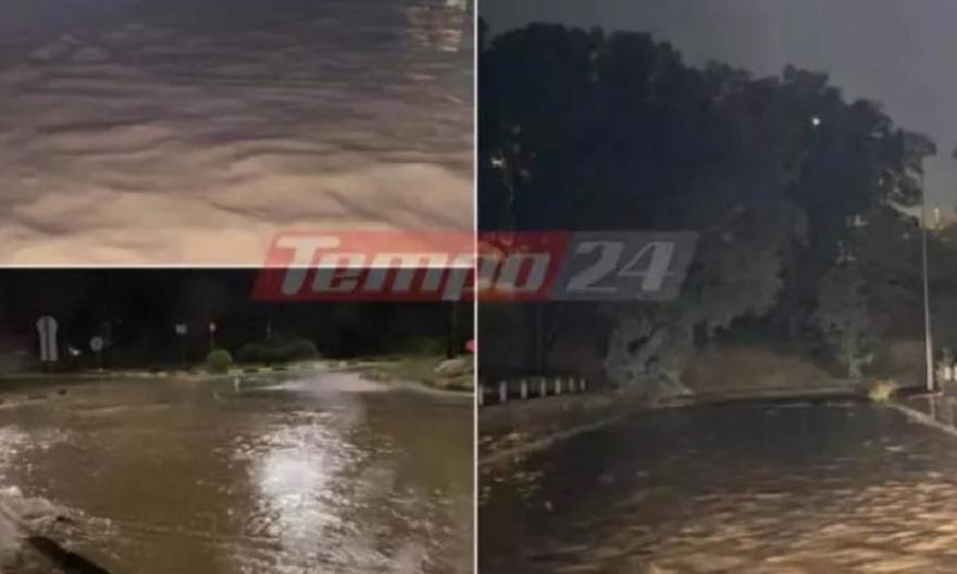 Σε λίμνες έχουν μετατραπεί οι κεντρικοί δρόμοι της Πάτρας, εξαιτίας της μεγάλης ποσότητας νερού από την καταιγίδα Elias που «σαρώνει» την πόλη.