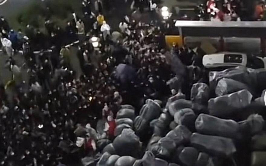 More riots broken out at Foxconn factory in communist #china's Zhengzhou. Violence clashes escalated by both CCP & chinese rioters, tear gas grenades were fired as chinese rioters returned hostiles w/ fire distinguisher. pic.twitter.com/5OU7dXAiiE