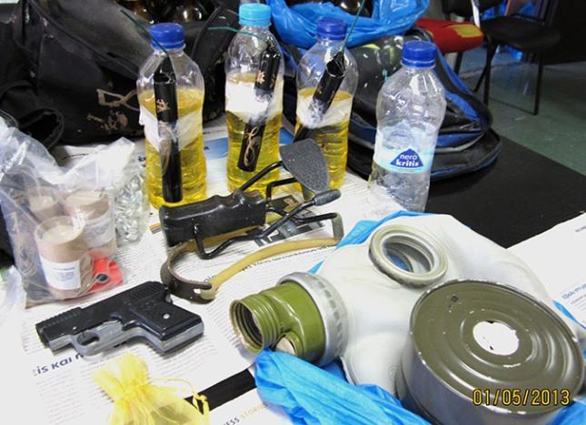 -Δεκαοκτώ (18) βόμβες μολότοφ (εκ των οποίων οι -3- εκρηκτικές) έτοιμες προς χρήση.
