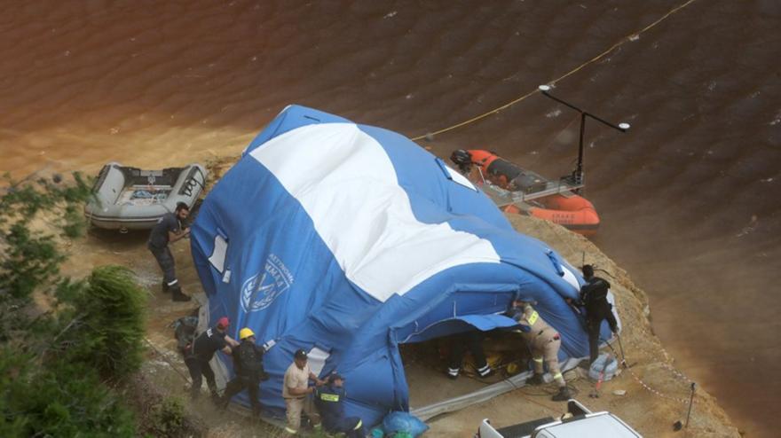 Με νύχια και με δόντια προσπαθούσαν χθες οι πυροσβέστες και οι αστυνομικοί να κρατήσουν στη θέση τους την τέντα που στήθηκε στη Κόκκινη Λίμνη, όπου λειτουργεί το συντονιστικό κέντρο των ερευνών. Ο δυνατός αέρας σήκωσε τη τέντα και δημιούργησε δυσκολίες στις έρευνες οι οποίες διακόπτονταν και συνεχίζονταν μέχρι τις 7 το βράδυ.