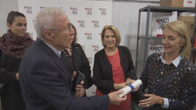 Εκ μέρους του ΟΛΟΙ ΜΑΖΙ ΜΠΟΡΟΥΜΕ ο κ. Γιάννης Σπανολιός παρέδωσε το χρηματικό ποσό στην πρόεδρο της Ένωσης ΜΑΖΙ ΓΙΑ ΤΟ ΠΑΙΔΙ κα Αλεξάνδρα Μαρτίνου.