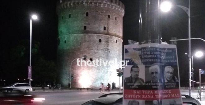Στο μήνυμα της αφίσας αναφέρεται: «Έλληνες Θεσσαλονικείς! Αυτοί στήριξαν την προδοσία της Μακεδονίας. Ξεπούλησαν το όνομά μας και τώρα με θράσος ζητούν ξανά την ψήφο μας. Μαύρο».