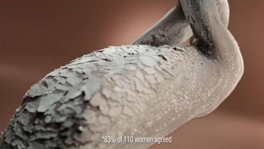 Στο διαφημιστικό, η αφήγηση ανέφερε: «Σε όσους μπορεί να ξύνονται μέρα και νύχτα. Σε όσους το δέρμα τους ξηραίνεται ακόμη και από το νερό». Την αφήγηση συνόδευαν εικόνες μιας μαύρης γυναίκας με κόκκινα σημάδια από ξύσιμο και μιας άλλης με το δέρμα καλυμμένο από σκασμένη, σαν πηλό, υφή.