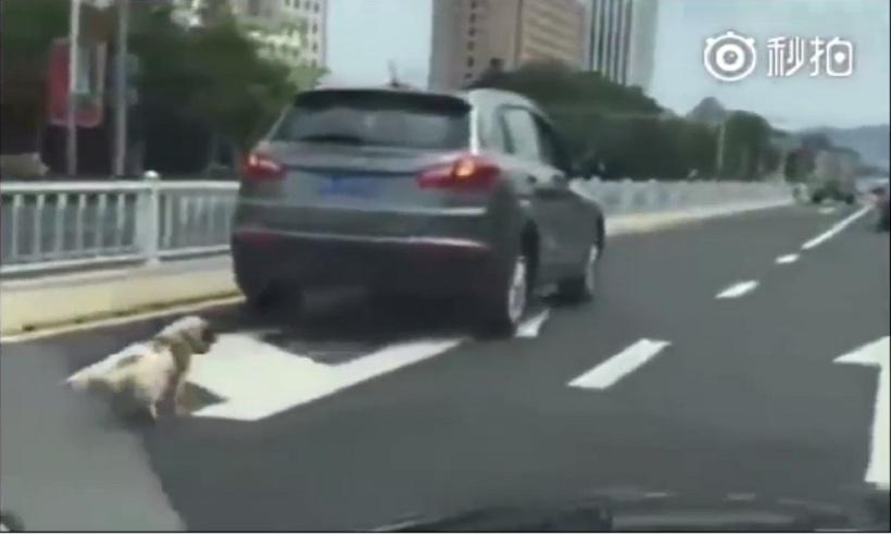 Οι εικόνες προκαλούν ντροπή: ο ιδιοκτήτης του μικρόσωμου σκύλου το έχει δέσει στον προφυλακτήρα του αυτοκινήτου του και το τραβάει στο δρόμο. Μάλιστα στο βίντεο καταγράφεται η στιγμή που ο ασυνείδητος άνδρας πατάει γκάζι με το άτυχο σκυλί να προσπαθεί να τρέξει για να ζήσει.