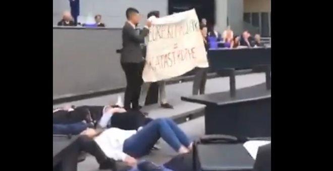 Μια απρόσμενη διαμαρτυρία πραγματοποίησαν 20 νεαροί ακτιβιστές στο γερμανικό κοινοβούλιο την Τρίτη την ώρα που στο βήμα βρισκόταν ο Βόλφγκανκ Σόιμπλε ο οποίος μιλούσε σε τετραήμερη εκδήλωση με θέμα «Νεολαία και Κοινοβούλιο».