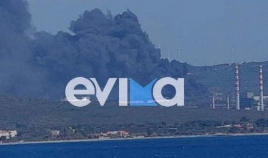 Μεγάλη φωτιά ξέσπασε το μεσημέρι της Κυριακής στο Αλιβέρι Ευβοίας κοντά στο εργοστάσιο της ΔΕΗ.