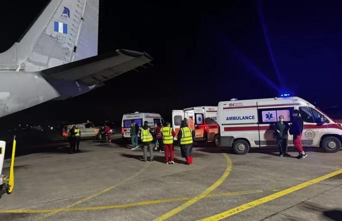 Πιο συγκεκριμένα, το αεροσκάφος έφτασε στα Σκόπια να πάρει άλλους τέσσερις εγκαυματίες, Οι τρεις μεταφέρθηκαν στο 401 Στρατιωτικό Νοσοκομείο και ένας για ΓΝΑ.