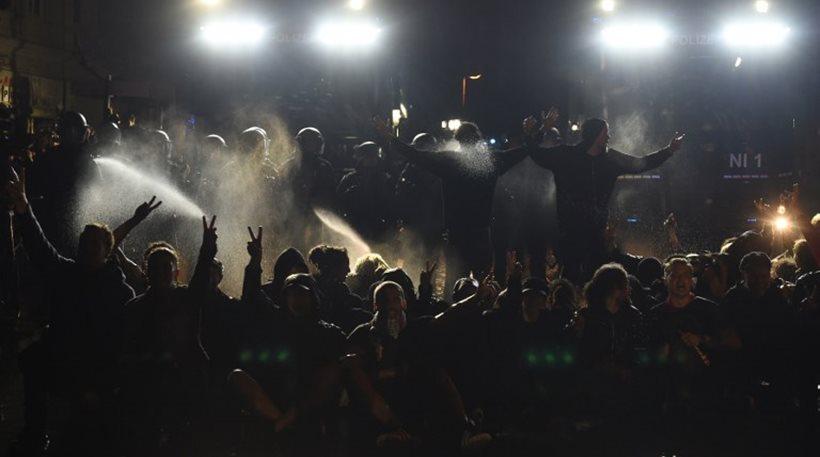 «Εξοπλισμένοι» με μπουκάλια και επιτιθέμενοι σε αυτοκίνητα, τα οποία πυρπόλησαν, οι διαδηλωτές απωθήθηκαν από την αστυνομία με δακρυγόνα και αντλίες νερού.