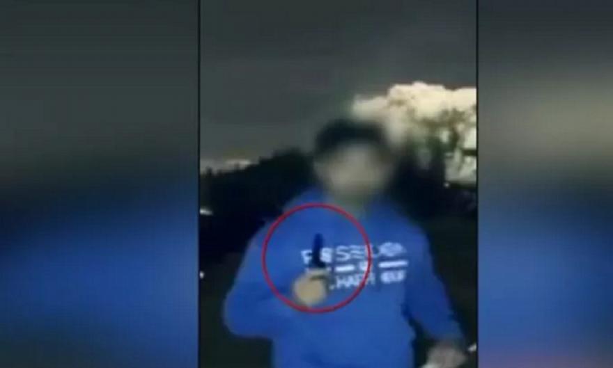 Ένα ακόμα άτομο φαίνεται να σχηματίζει με τα χέρια του ένα πιστόλι.
