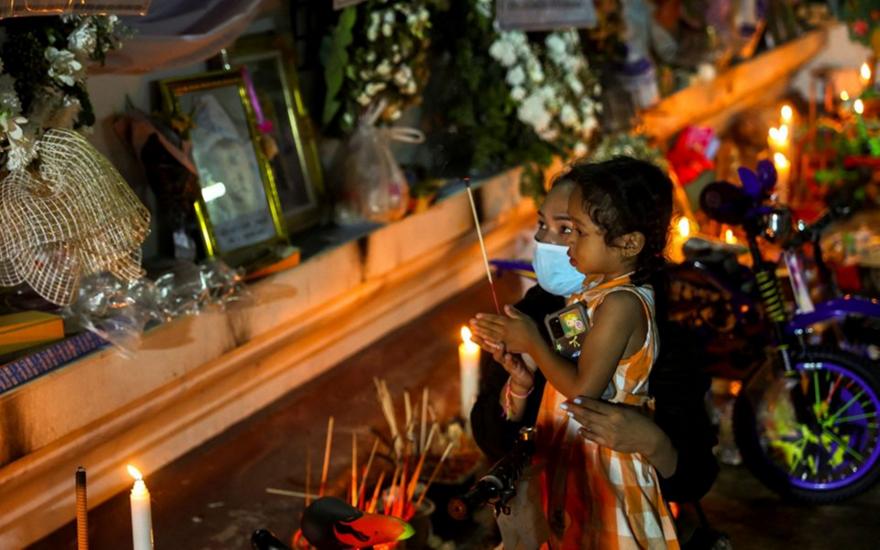 Αρχισαν την Κυριακή στην πόλη Ουτάι Σαουάν της βόρειας Ταϊλάνδης οι βουδιστικές νεκρώσιμες τελετές για τα 22 νήπια που δολοφονήθηκαν σε παιδικό σταθμό την περασμένη Πέμπτη σε παιδικό σταθμό. Εκατοντάδες άνθρωποι συνέρρεαν όλη την ημέρα στους τρεις ναούς της πόλης, όπου βρίσκονταν τα μικρά φέρετρα, προκειμένου να τοποθετήσουν λουλούδια, κεριά, τρόφιμα και παιχνίδια και να αποχαιρετίσουν τα παιδιά.