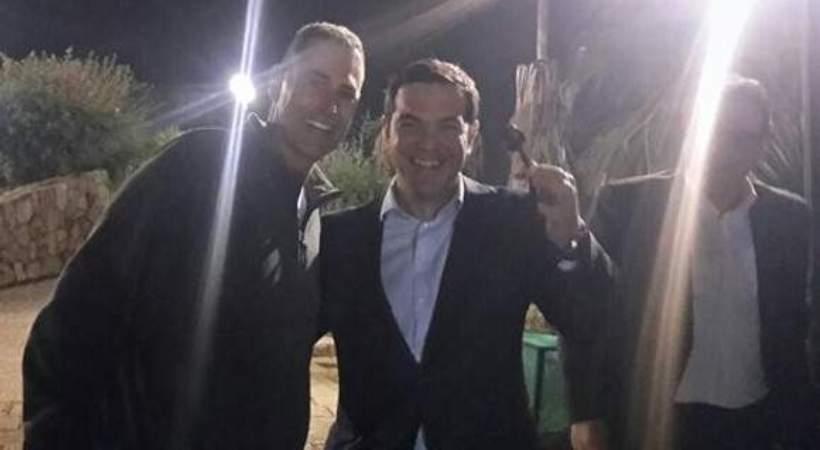 Στη φωτογραφία απεικονίζεται ο Αλέξης Τσίπρας να κρατάει ένα λυγισμένο κουτάλι, αγκαλιά με τον Γιούρι Γκέλερ.
