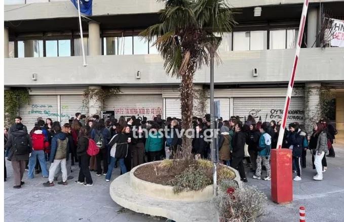 Διαμαρτυρία έξω από την Πρυτανεία του Αριστοτέλειου Πανεπιστημίου Θεσσαλονίκης πραγματοποιούν από νωρίς το πρωί φοιτητές, οι οποίοι διαμαρτύρονται για τις ηλεκτρονικές ψηφοφορίες για την ανάδειξη εκπροσώπων των φοιτητών στα όργανα του ιδρύματος.