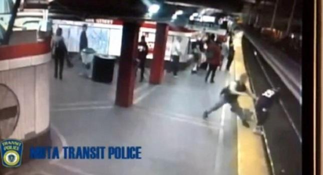 Τα δευτερόλεπτα αγωνίας κατέγραψε κάμερα ασφαλείας του σταθμού.