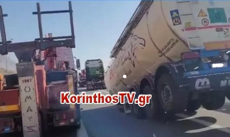 Σύμφωνα με το korinthostv.gr, μια νταλίκα που βρισκόταν εν κινήσει, στην νέα Εθνική Οδού Αθηνών-Κορίνθου, στο ύψος της Κακιάς Σκάλας στο ρεύμα προς Αθήνα, για άγνωστους λόγους, αποκολλήθηκε ο τράκτορας από το βυτιοφόρο που μετέφερε γάλα και προκάλεσε τρόμο στους διερχόμενους οδηγούς.