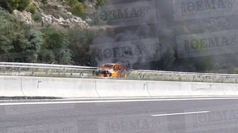 Στις φλόγες έχει τυλιχθεί ένα αυτοκίνητο μάρκας Fiat punto στο 74,9 χιλιόμετρο της Εθνικής Οδού Αθηνών -Κορίνθου, στο ρεύμα προς Πάτρα.
