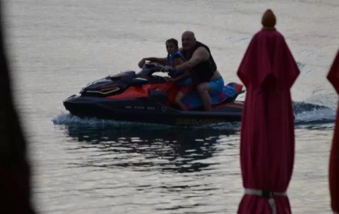 Χαμογελαστός και ομιλητικός με όλους όσους τον πλησίαζαν, ο Αχιλλέας Μπέος απόλαυσε τα μαγευτικά νερά της Αγίας Ελένης όπου είναι η αγαπημένη του παραλία ενώ έκανε και τζετ σκι!