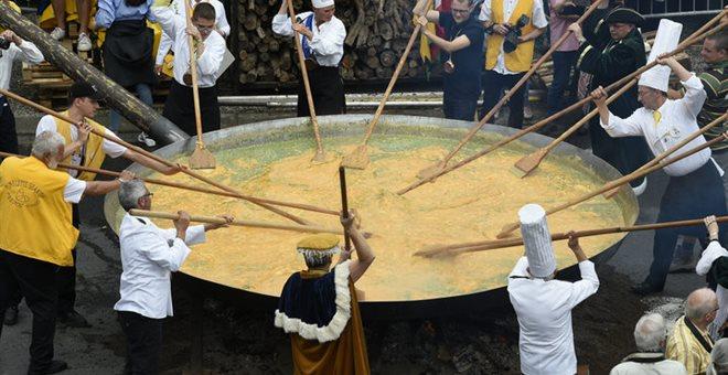 Εκατοντάδες άνθρωποι συγκεντρώθηκαν στην πόλη Μαλμεντί στο ανατολικό Βέλγιο. H πρόεδρος του τοπικού παραρτήματος της "αδελφότητας της τεράστιας ομελέτας", Μπενεντίκτ Ματί, τους διαβεβαίωσε ότι το έδεσμα που θα δοκίμαζαν ήταν απόλυτα ασφαλές. Με τη συνοδεία ζωντανής μουσικής όλοι μαζί έσπευσαν να γευτούν την εντυπωσιακή σε μέγεθος ομελέτα.