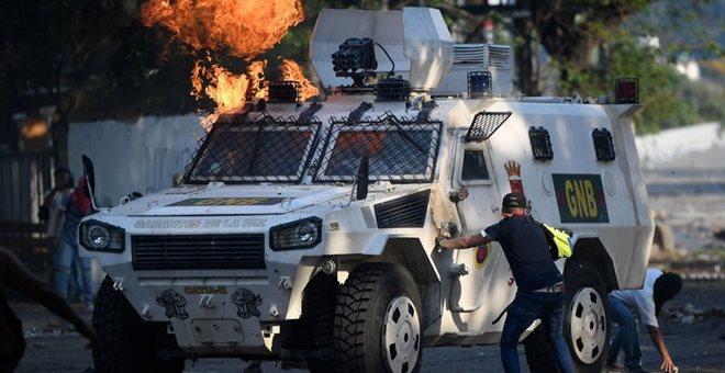 Οι διαδηλωτές, αρκετοί με καλυμμένα τα πρόσωπα, άρχισαν να πετούν πέτρες και κοκτέιλ μολότοφ εναντίον ανδρών της μπολιβαριανής εθνικής φρουράς (GNB), ενός Σώματος παρόμοιου με τη χωροφυλακή, που είναι αρμόδιο για την επιβολή της τάξης, που αντέδρασαν κάνοντας χρήση δακρυγόνων.