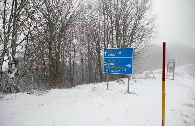 Χειμωνιάτικο το τοπίο στη Μαγνησία με άφθονο χιόνι στο Πήλιο και την Όθρυ, αλλά οι δρόμοι είναι ανοιχτοί με συνεχείς αποχιονισμούς.