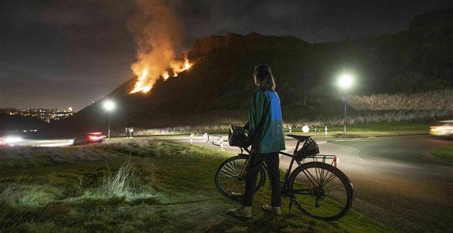 Στην Σκωτία, οι πυροσβέστες έδωσαν μάχη όλη την νύκτα για να κατασβέσουν μία μεγάλη πυρκαγιά στο Κάθισμα του Αρθούρου στο Εδιμβούργο.