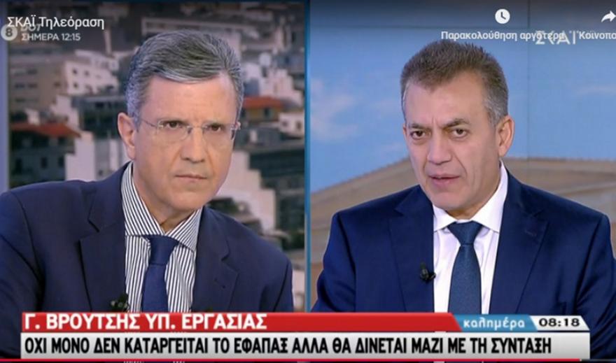 Ο υπουργός Εργασίας και Κοινωνικών Υποθέσεων,Γιάννης Βρούτσης, μίλησε στο ΣΚΑΙ και την εκπομπή Καλημέρα αναφορικά με τα εφαπαξ και τις συντάξεις δηλώνοντας πως: