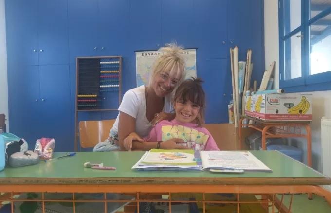 Η νεαρή δασκάλα διορίστηκε στην Ηρακλειά πέρυσι και είχε δύο παιδιά στο σχολείο. Μεγάλωσαν όμως, το ένα έπρεπε να φοιτήσει στο γυμνάσιο και έτσι μετακόμισε η οικογένεια στη Νάξο και έμεινε μόνο με την κόρη της που συμπλήρωσε το έκτο έτος και φέτος είναι στην πρώτη δημοτικού.
