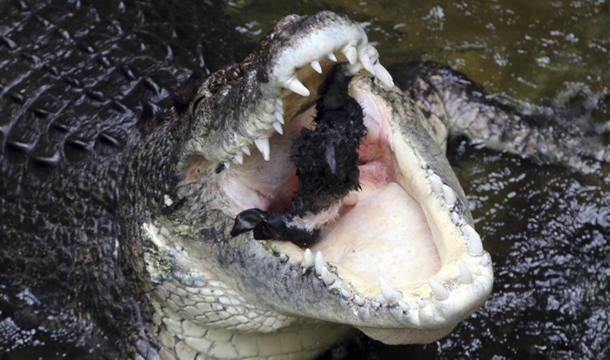 Ύστερα από μερικά λεπτά, κατάφερε να ανέβει στην πλάτη του ερπετού, να του κλείσει τα σαγόνια, και στη συνέχεια να τον διώξει μακριά του.