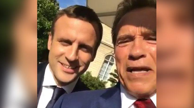 Ο Σβαρτσενέγκερ ανέβασε στο λογαριασμό του στο twitter ένα βίντεο όπου εμφανίζεται μαζί με τον Εμμανουέλ Μακρόν με σύνθημα «ας κάνουμε τον πλανήτη σπουδαίο ξανά»- σύνθημα που παραπέμπει ευθέως στην προεκλογική καμπάνια του Τραμπ. Ο ηθοποιός μάλιστα, χαρακτηρίζει σπουδαίο ηγέτη τον Μακρόν και σημειώνει ότι μπορούν να εργασθούν στον τομέα της «καθαρής» ενέργειας.