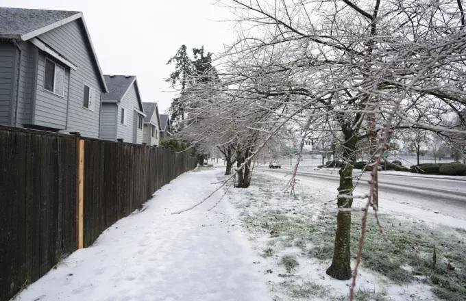 Στο Όρεγκον, 75.000 άνθρωποι είχαν μείνει χωρίς ηλεκτρικό το βράδυ της Παρασκευής, σύμφωνα με τον ιστότοπο Poweroutage.us και ο κυβερνήτης κήρυξε κατάσταση έκτακτης ανάγκης.