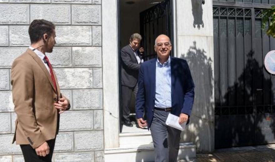 Λίγο νωρίτερα, ο Έλληνας υπουργός Εξωτερικών συνόδευσε των πρωθυπουργό Κυριάκο Μητσοτάκη στη συνάντηση με τον πρωθυπουργό της Βόρειας Μακεδονίας, Ζόραν Ζάεφ.