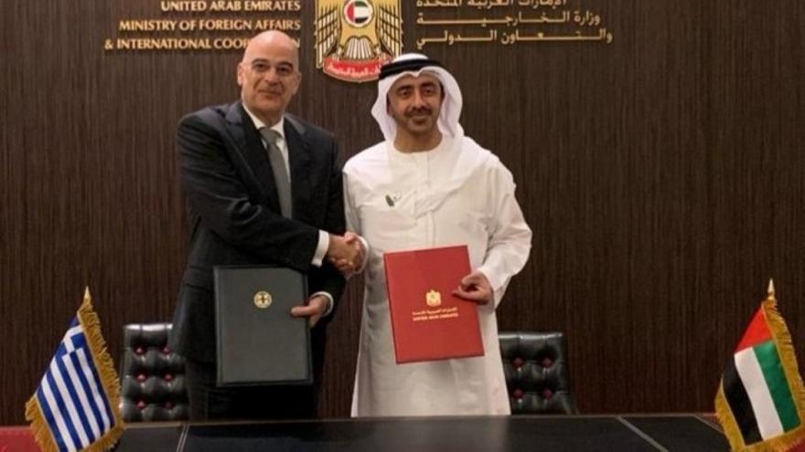 Μετά το πέρας της συνάντησης, οι δύο υπουργοί Εξωτερικών υπέγραψαν μνημόνιο κατανόησης για τη συνεργασία Ελλάδας-ΗΑΕ στον τομέα της διπλωματικής εκπαίδευσης.