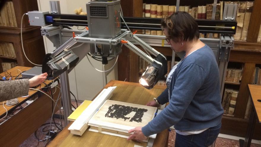 Ιταλοί και άλλοι Ευρωπαίοι επιστήμονες κατάφεραν για πρώτη φορά, χρησιμοποιώντας μια υψηλής τεχνολογίας μη επεμβατική μέθοδο απεικόνισης, να δουν τμήματα του αρχαιοελληνικού κειμένου που βρίσκεται κρυμμένο στην πίσω πλευρά ενός από τους διάσημους παπύρους του Ηρακλείου (Herculaneum scrolls).