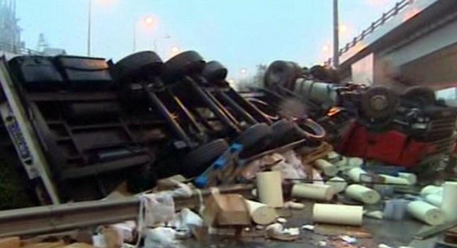 Μία νταλίκα δίπλωσε στις τρεις τα ξημερώματα και ανατράπηκε στην Εγνατία Οδό στη Θεσσαλονίκη.