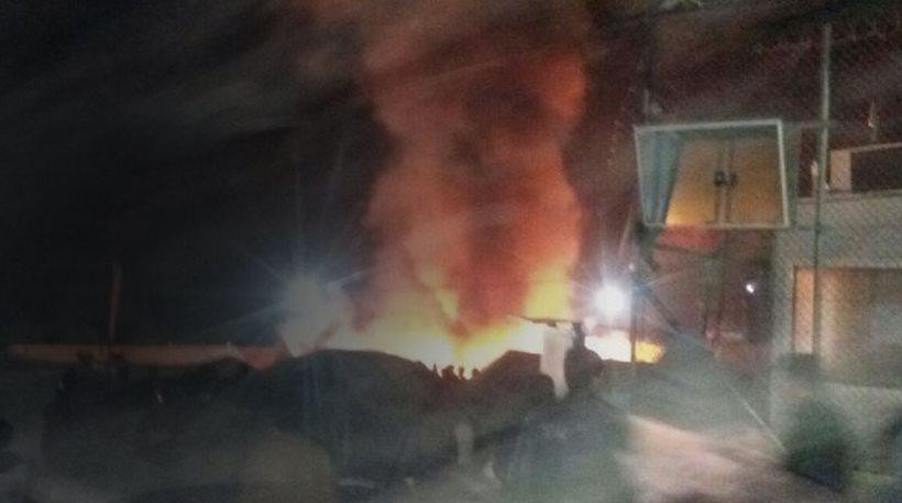 Η φωτιά που ακολούθησε της έκρηξης κατακαίει μεγάλο μέρος του καταυλισμού, ενώ παράλληλα υπήρξαν και συγκρούσεις μεταξύ των μεταναστών και προσφύγων που διαμένουν στο hot spot.