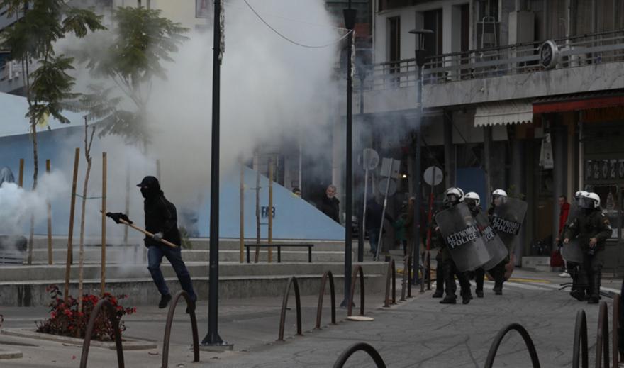 Ομάδα ατόμων εξαπέλυσε επίθεση κατά της αστυνομίας που τους εμποδίζει να εισελθουν στο κτίριο και να το ανακαταλάβουν.