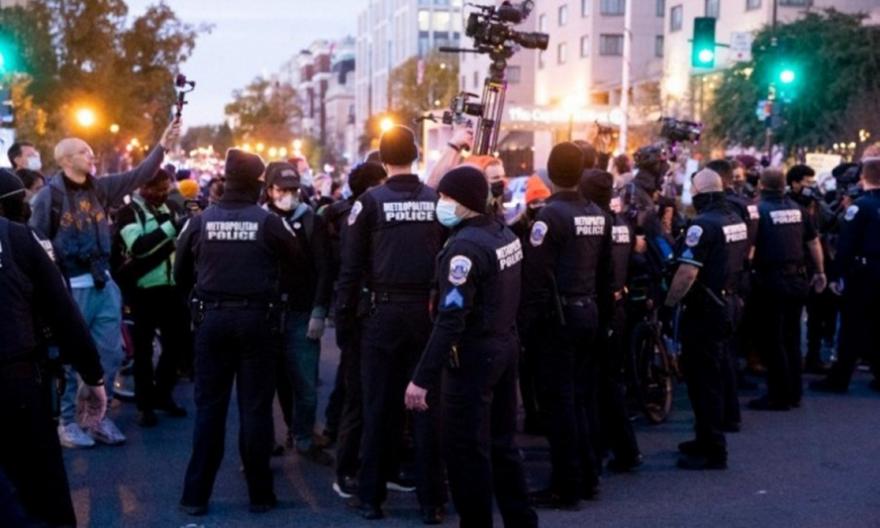 Αργά το απόγευμα το πλήθος, στην πλειονότητά του υποστηρικτές του υποψήφιου των Δημοκρατικών Τζο Μπάιντεν, συγκεντρωνόταν σε αυτή την εμβληματική λεωφόρο που οδηγεί στον Λευκό Οίκο για να περιμένει την ανακοίνωση των αποτελεσμάτων των προεδρικών εκλογών σε μια εορταστική ατμόσφαιρα.