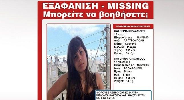 Amber Alert έχει σημάνει για την εξαφάνιση της 17χρονης Κατερίνας Ιορδανίδου, η οποία εξαφανίστηκε στις 18 Ιουνίου στις 8 το πρωί από την περιοχή της Αργυρούπολης.