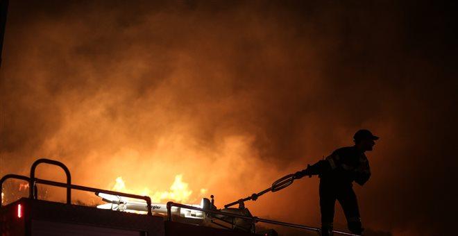Περισσότεροι από 120 πυροσβέστες και δεκάδες οχήματα επιχειρούν στις κατά τόπους εστίες ενώ ένα ελικόπτερο εκτελεί ρίψεις νερού στη δασική έκταση του Κοιλιομένου, στη βόρεια πλευρά του νησιού.