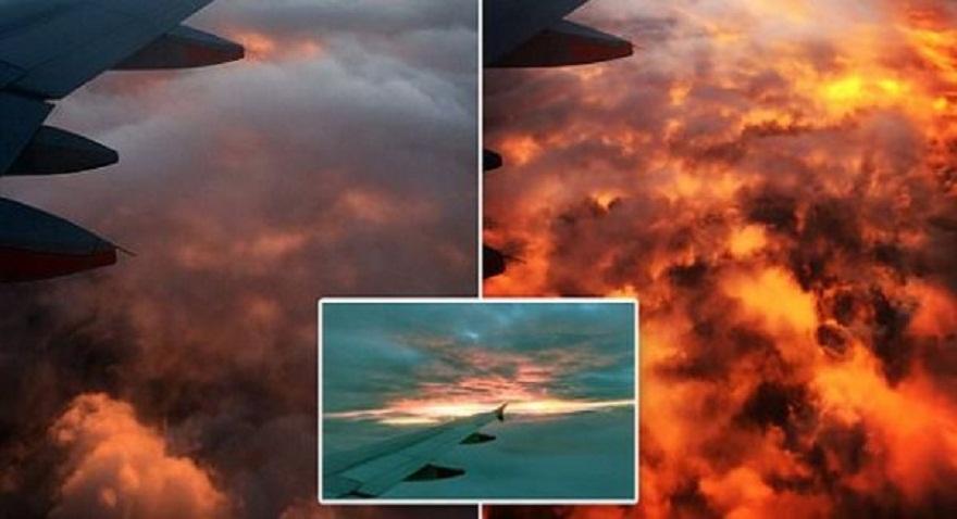 Ήταν η ώρα του ηλιοβασιλέματος και τα σύννεφα είχαν πάρει εντυπωσιακούς χρωματισμούς, μοιάζοντας σαν... να έχει πάρει φωτιά ο ουρανός!