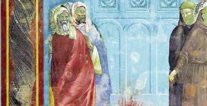 Τώρα φαίνεται πως ο ζωγραφικός κύκλος του Αγίου Φραγκίσκου απέκτησε και τρίτον δαίμονα που, σύμφωνα με έναν έμπειρο μελετητή του Αγίου, εντοπίζεται στο επεισόδιο της συνάντησής του με τον Σουλτάνο της Αιγύπτου Μάλεκ αλ Καμίλ, γνωστό ως «Η δοκιμασία της φωτιάς μπροστά στον Σουλτάνο», ένα γεγονός ιστορικά καταγεγραμμένο, που πραγματοποιήθηκε στη Νταμιέτα στις 24 Ιουνίου 1219.