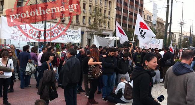Οι διαδηλωτές συγκεντρώθηκαν λίγο μετά τις 12 στα Προπύλαια, ωστόσο, οι πορείες τους στη συνέχεια χωρίστηκαν.