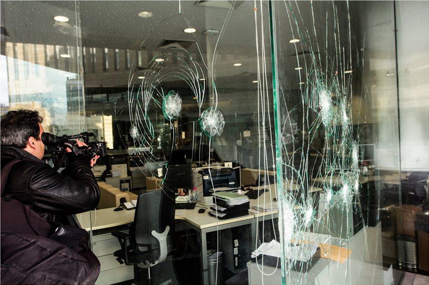 Ομάδα περίπου 20 ατόμων επιτέθηκαν και προκάλεσαν σημαντικές ζημιές με σφυριά και βαριοπούλες στην πρόσοψη του κτιρίου της Εθνικής Ασφαλιστικής, στη λεωφόρο Συγγρού.