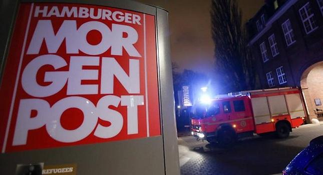 "Αρχικά ερρίφθησαν πέτρες και στη συνέχεια ένας εμπρηστικός μηχανισμός μέσα σε ένα παράθυρο" της Hamburger Morgenpost με αποτέλεσμα να ξεσπάσει φωτιά. Δύο αίθουσες υπέστησαν ζημιές και η φωτιά κατασβέστηκε γρήγορα, δήλωσε εκπρόσωπος της αστυνομίας.