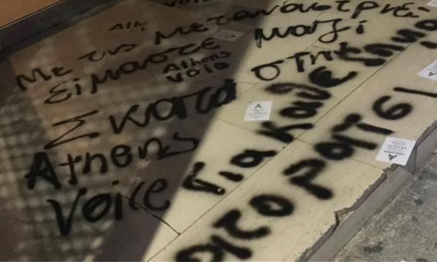 Με σπρέι έγραψαν συνθήματα στην είσοδο του κτρίου και πέταξαν τρικάκια στα οποία αναγράφονταν οι φράσεις: