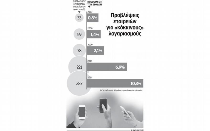 Σύμφωνα με την ΕΕΚΤ, το 2011 οι προβλέψεις επισφαλών απαιτήσεων ανήλθαν σε 287 εκατ. ευρώ, δηλαδή περίπου στο 10,3% του συνολικού τζίρου των εταιρειών του κλάδου. Εκτοτε η Ενωση δεν έχει δώσει νεότερα στοιχεία, αλλά θεωρείται ότι καθώς η κατάσταση στην οικονομία έχει επιδεινωθεί οι επισφαλείς απαιτήσεις έχουν αυξηθεί. Από την άλλη πλευρά, οι επιχειρήσεις πιέζουν τους πελάτες τους να γίνουν περισσότερο συνεπείς, εφαρμόζοντας φραγή των υπηρεσιών τους, από την έκδοση του δεύτερου λογαριασμού που αναμένει εξόφληση. Ο πρώτος καθίσταται ληξιπρόθεσμος, παρόλο που η ΕΕΤΤ έχει ορίσει ως ληξιπρόθεσμες οφειλές εκείνες που δεν καταβάλλονται από τον τρίτο μήνα και μετά. Στο μεταξύ, σχεδόν μια Ελλάδα άλλαξε τον τηλεφωνικό της αριθμό. Σύμφωνα με την Εθνική Επιτροπή Τηλεπικοινωνιών & Ταχυδρομείων (ΕΕΤΤ), από το 2004 που εφαρμόσθηκε για πρώτη φορά η φορητότητα αριθμού, έκτοτε περισσότεροι από 10 εκατ. τηλεφωνικοί αριθμοί έχουν μεταφερθεί μέσω φορητότητας σε άλλο πάροχο. Η φορητότητα αριθμού αφορά στη μετάβαση του συνδρομητή σε άλλο πάροχο τηλεπικοινωνιακών υπηρεσιών, διατηρώντας τον ίδιο αριθμό.